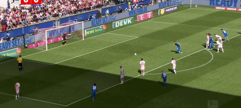 第29分钟,科隆球员禁区内抽射,皮球被门将化解