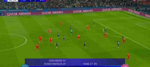 仅仅7分钟后,巴黎圣日耳曼球员杜埃左路转身精准直传,克瓦拉茨赫利亚晃开角度,内切推射一气呵成,拜仁慕尼黑门将诺伊尔鞭长莫及,巴黎圣日耳曼扳平,1-1!